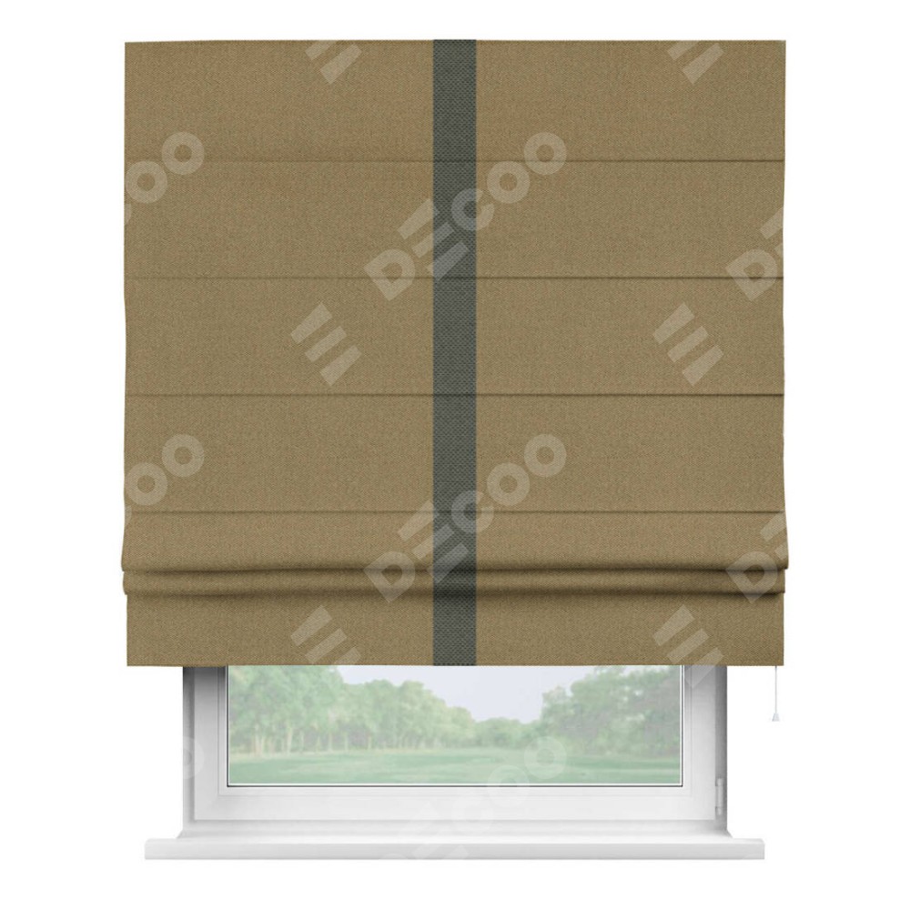 Римская штора производителя «Cortin», используется для проёма, пошита из ткани лён димаут оливковый, артикул 16243. Отделка шторы кантом «Хайвэй», ткань для канта используется из льна димаут разной расцветки на выбор. Имеет универсальный механизм и подходит для монтажа: на потолок, на стену и в нишу.