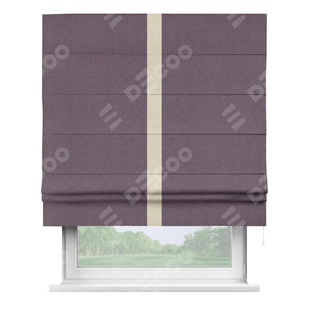 Римская штора производителя «Cortin», используется для проёма, пошита из ткани лён димаут светло-фиолетовый, артикул 83 034. Отделка шторы кантом «Хайвэй», ткань для канта используется из льна димаут разной расцветки на выбор. Имеет универсальный механизм и подходит для монтажа: на потолок, на стену и в нишу.