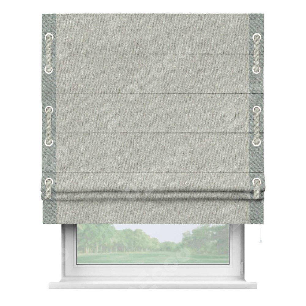 Римская штора «Кортин» с кантом Стрим Дуо (люверсы с пояском), для проема, ткань твид блэкаут, коричнево-серый