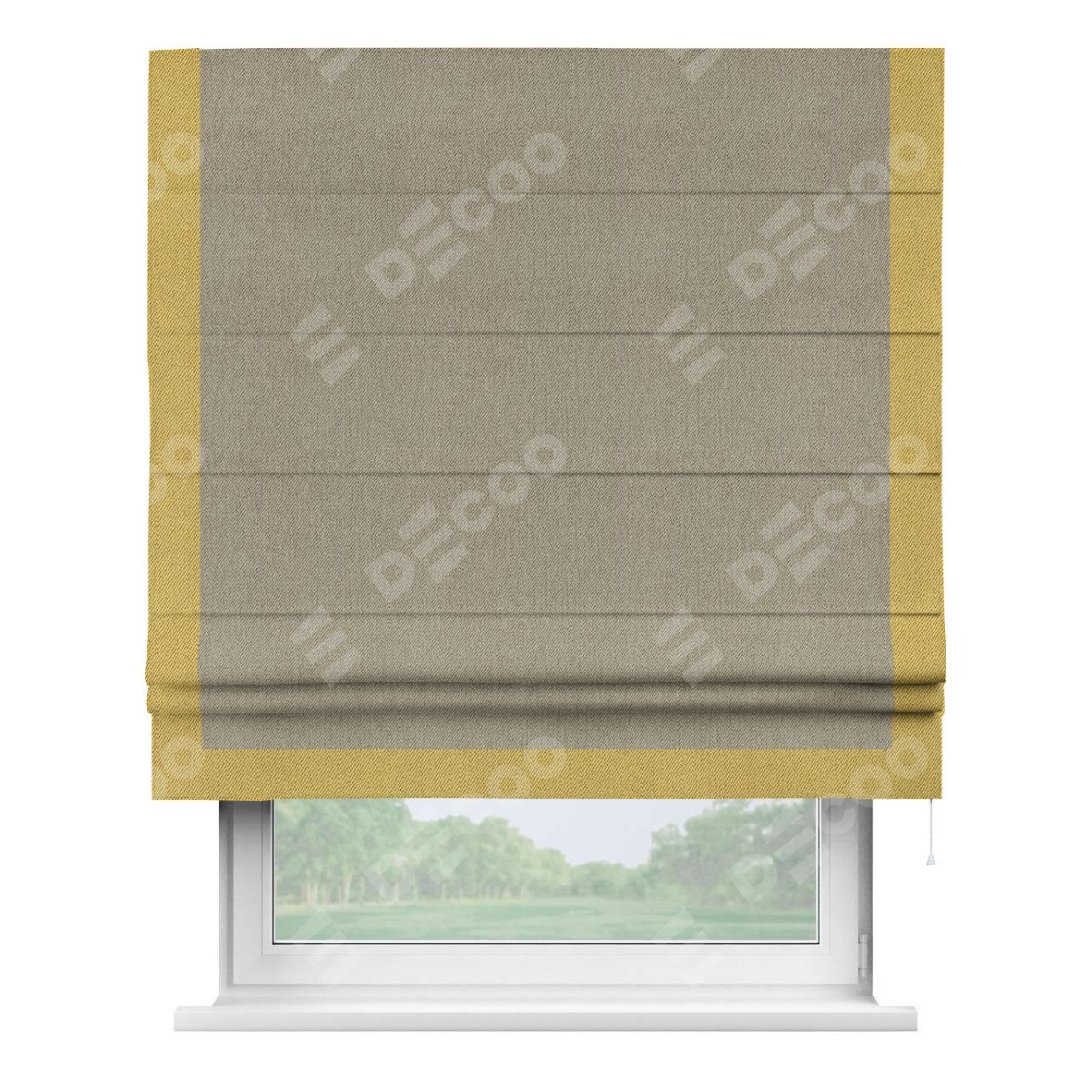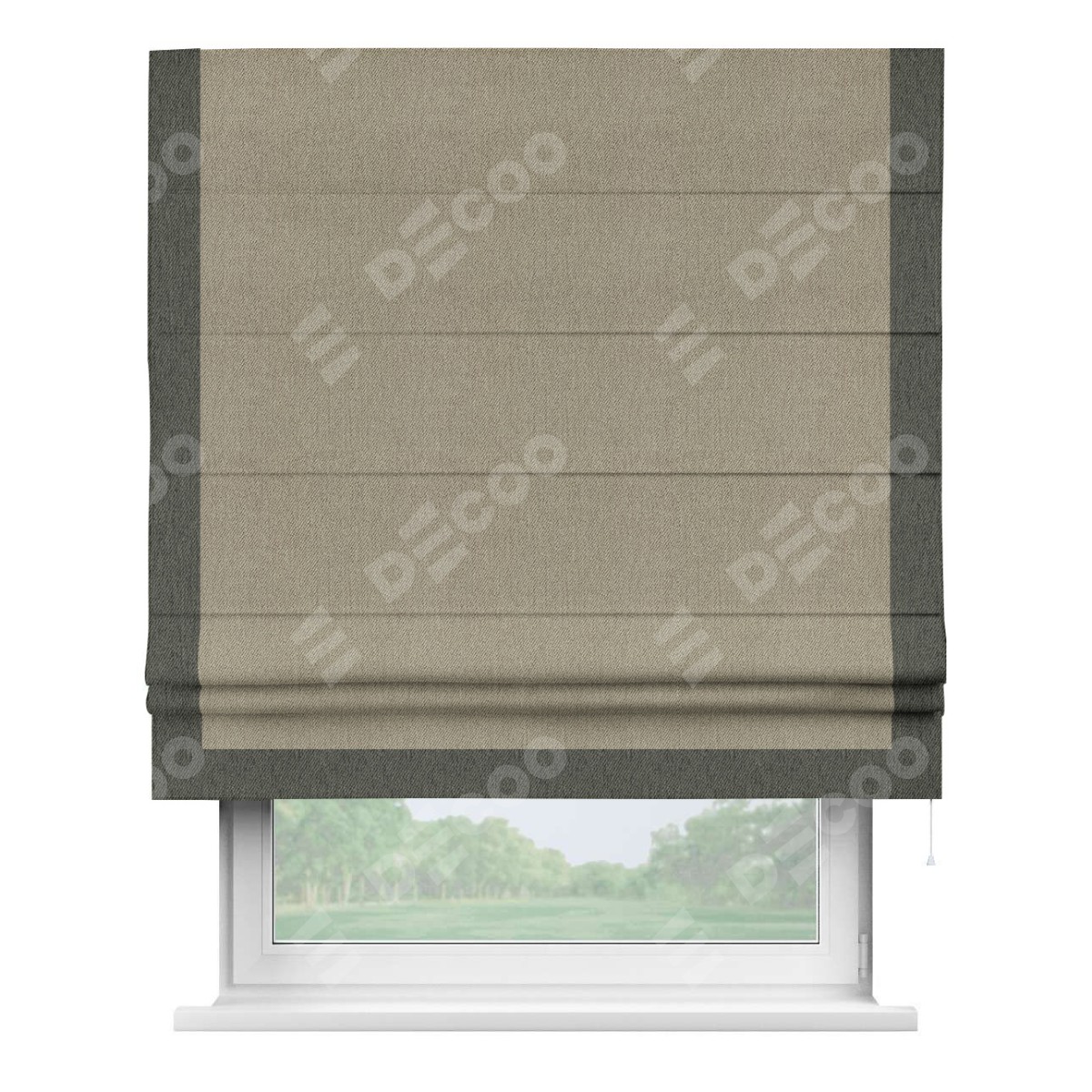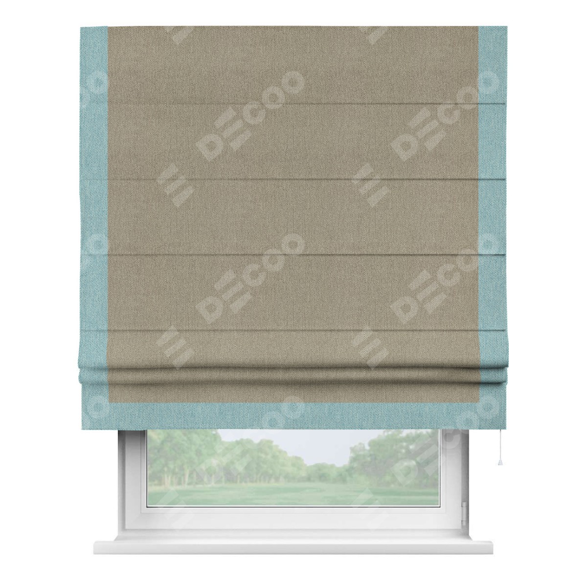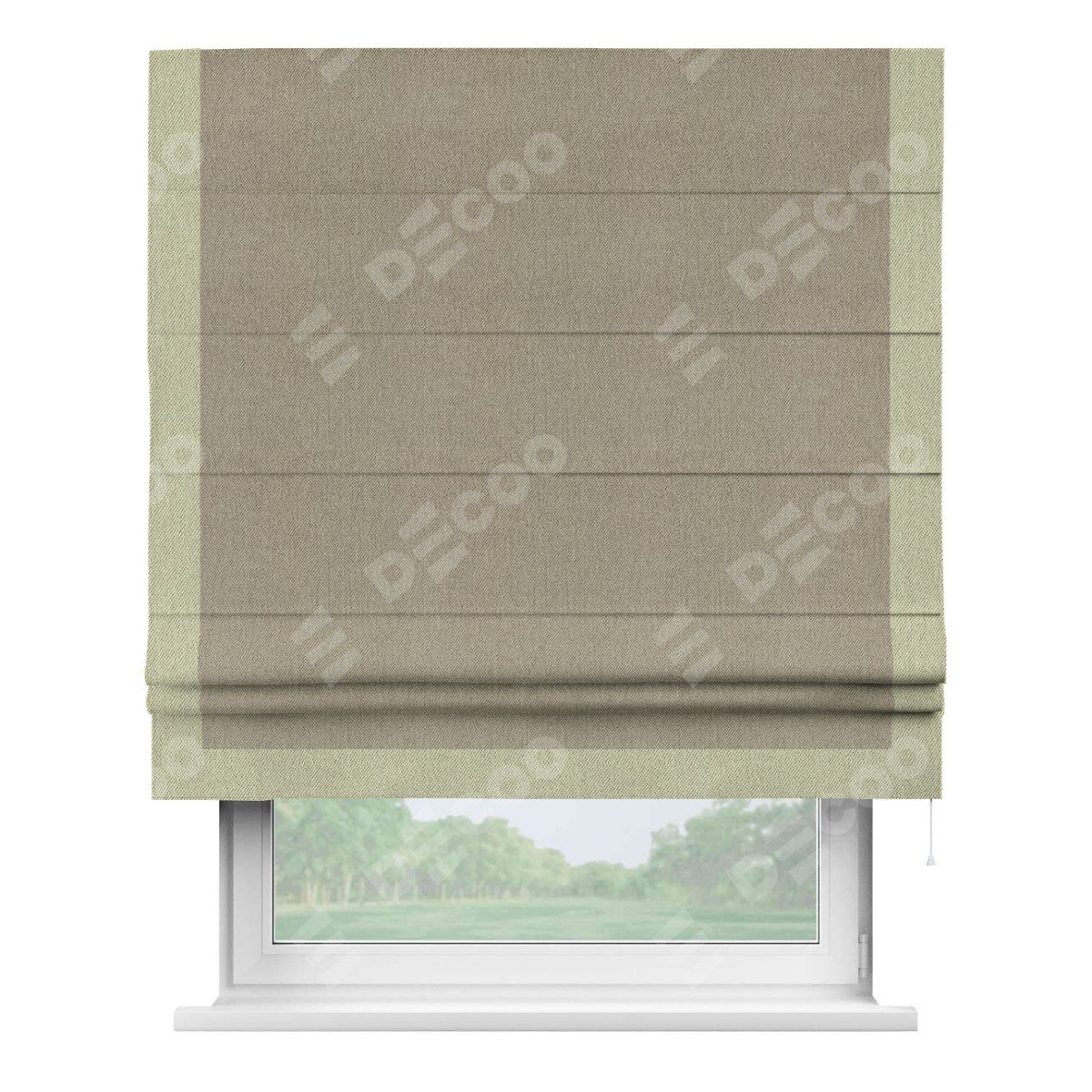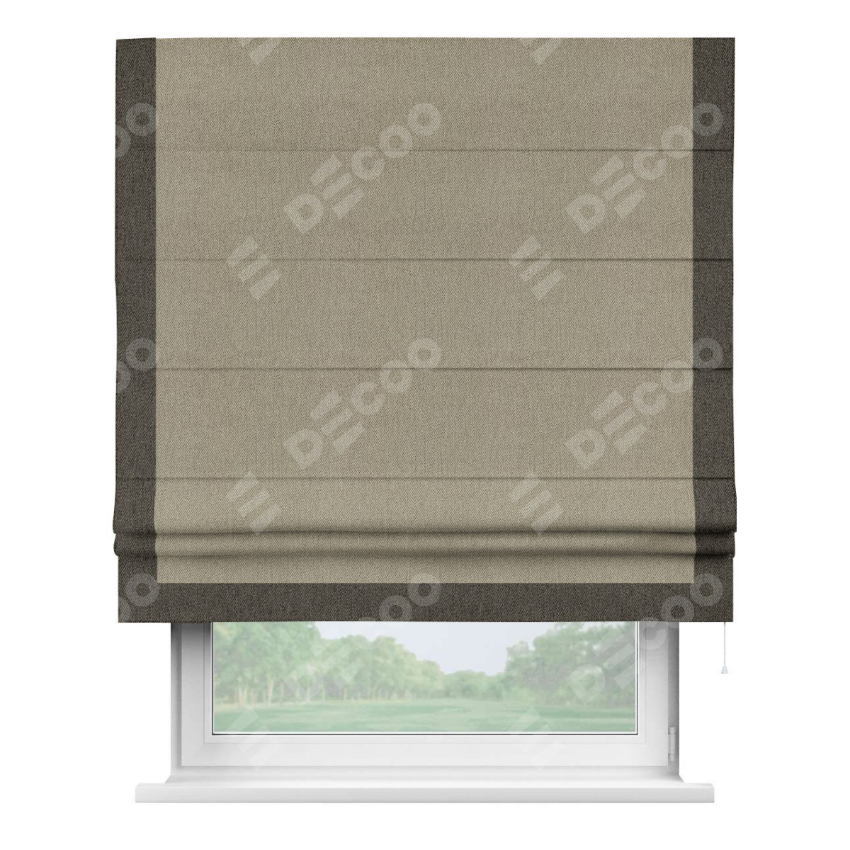 Римская штора производителя «Cortin», используется для проёма, пошита из ткани твид блэкаут кофе, артикул 21575. Отделка шторы кантом «Виктория», ткань для канта используется из твида разной расцветки на выбор. Имеет универсальный механизм и подходит для монтажа: на потолок, на стену и в нишу.
