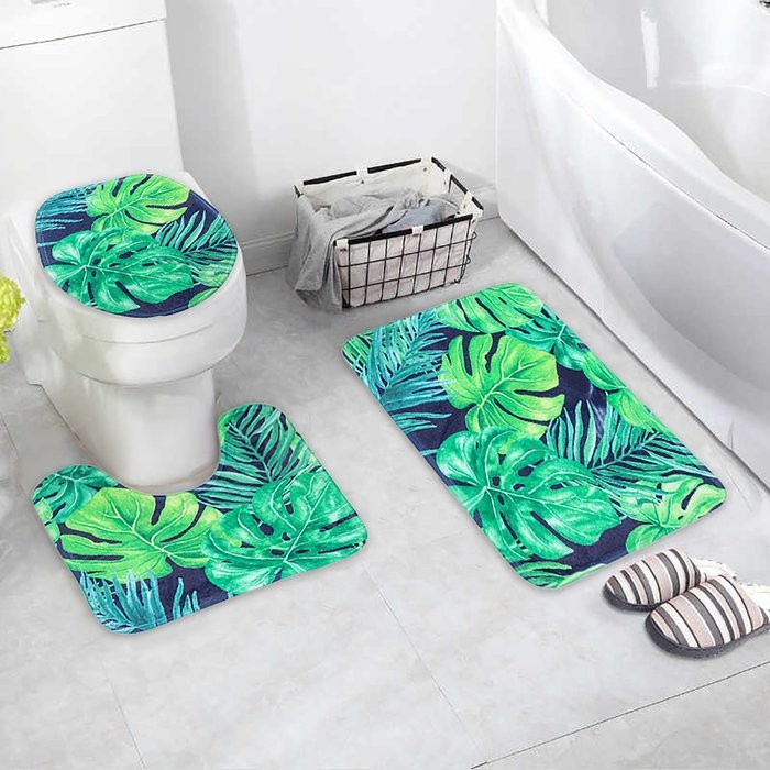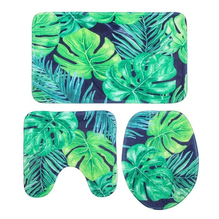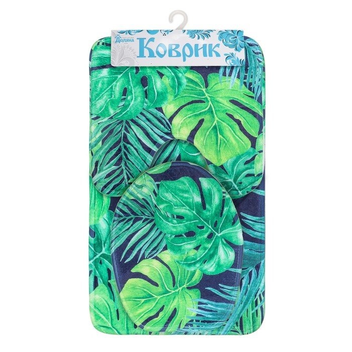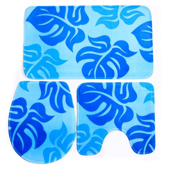 Набор ковриков для ванны и туалета Доляна «Голубые листья», 3 шт: 41×45, 40×50, 45×75 см