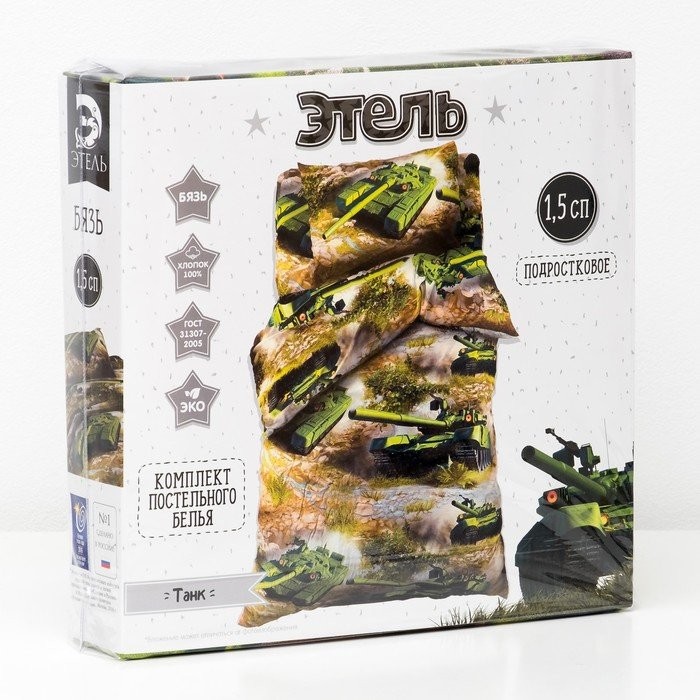 Постельное бельё «Этель» 1.5 сп Танки 143*215 см предоставлена в следующих характеристиках: