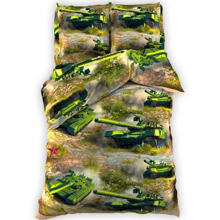 Постельное бельё «Этель» 1.5 сп Танки 143*215 см, 150*214 см, 50*70 см, бязь 125 г/м2