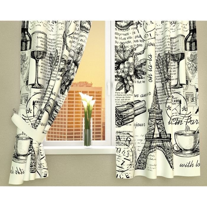 Фотошторы кухонные «Вырезка из журнала», 145×180 см, 2 шт., габардин, п/э