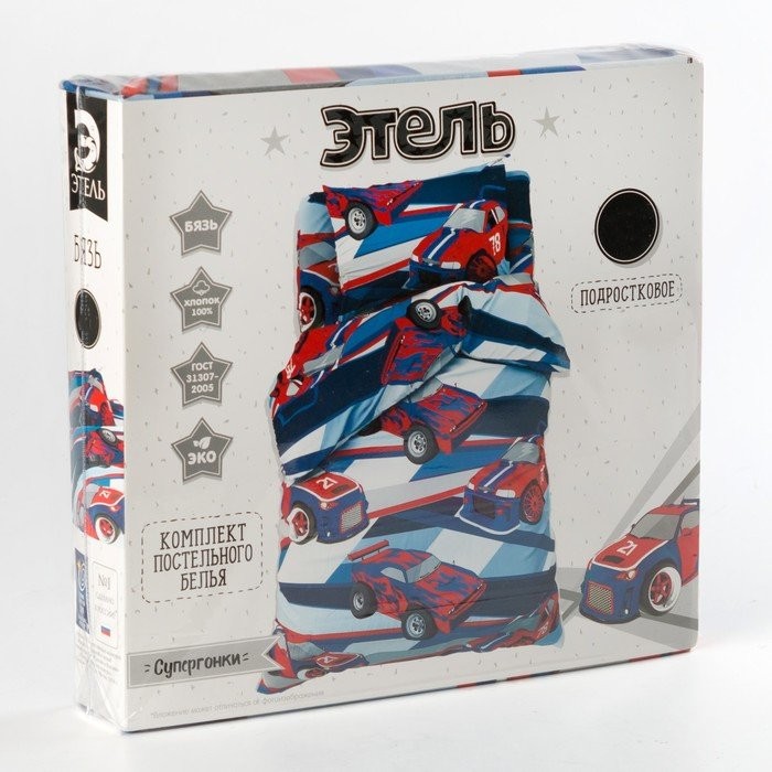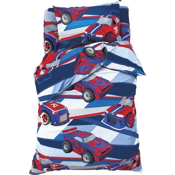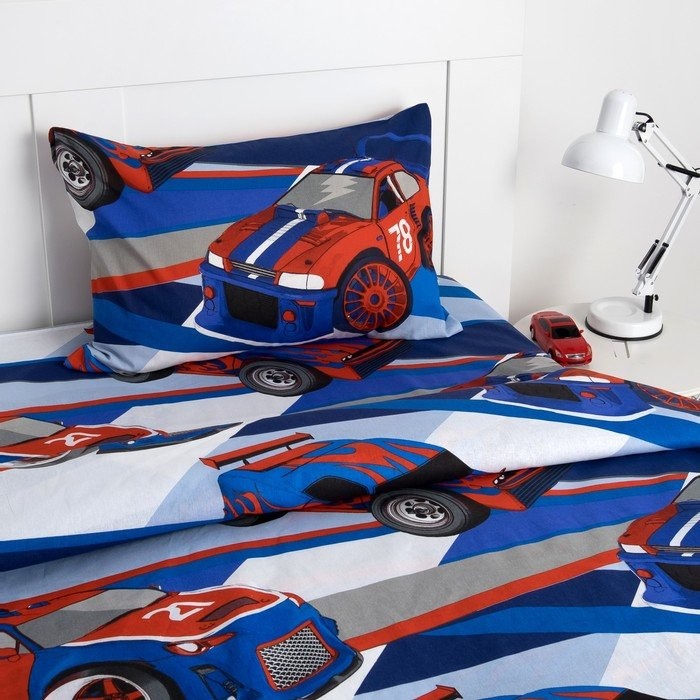 Постельное бельё «Этелька» 1,5 сп., Супер гонки 143×215 см, 150×214 см, 50×70 см -1 шт., 100% хлопок, бязь, 125 г/м2