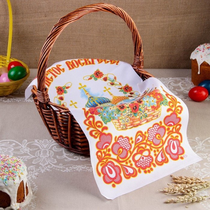 Рушник — один из самых древних и символичных предметов, дошедших до наших дней и не потерявших своего назначения. Пасхальный рушник (или салфетка) появился с принятием христианства на Руси. На нём изображены красивые православные храмы, религиозная символика и надписи «Христос Воскрес».