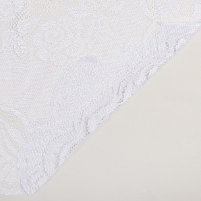 Тюль кухонная со шторной лентой, 470×165 см, белый, 100% п/э украсит помещение и обновит внешний вид кухни. Изящное цветочное оформление и невесомая фактура подчеркнут общий интерьер.