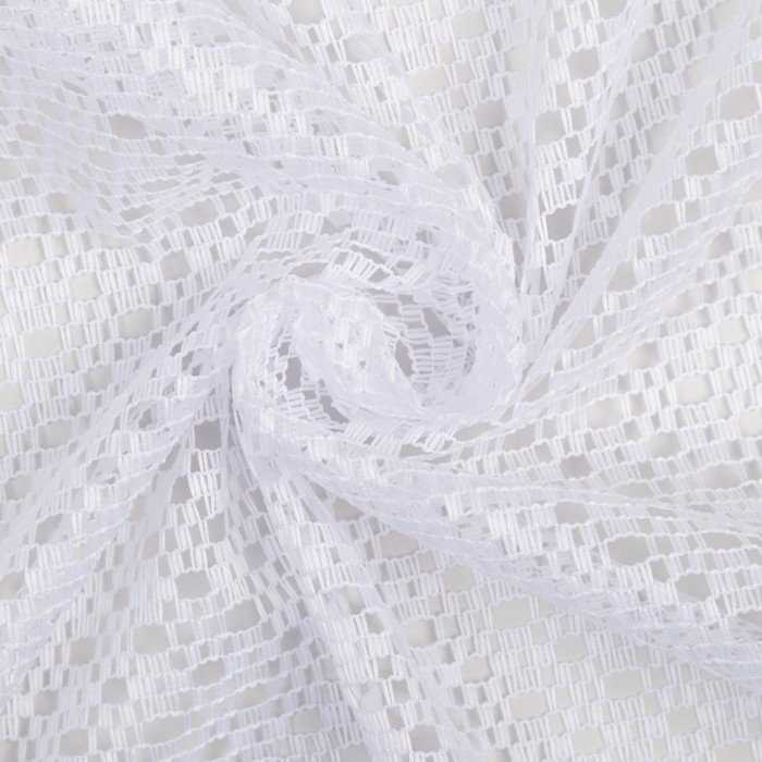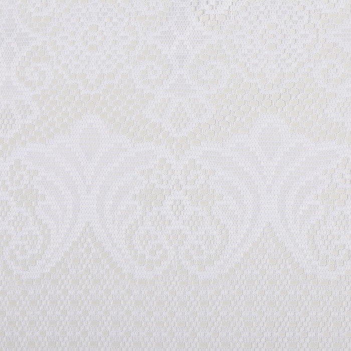 Тюль кухонная со шторной лентой, 285×165 см, белый, 100% п/э сделает внешний вид обеденной зоны полным и законченным. Изящное оформление в виде причудливых узоров подчеркнёт ваш изысканный стиль и утончённый вкус.