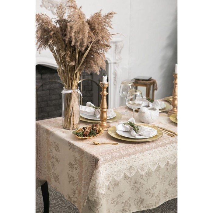 Скатерть «Доляна» Кружево 145×146 см, 100% хлопок, рогожка, 164 г/м2