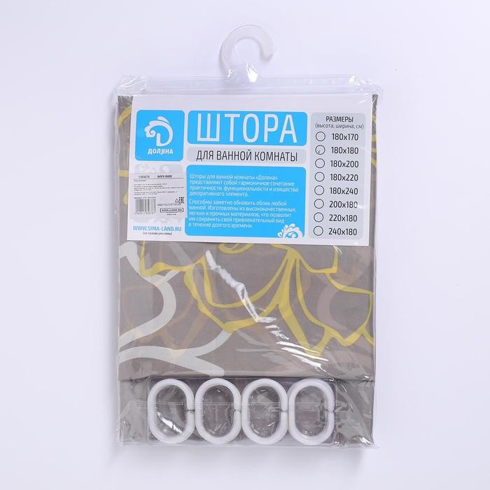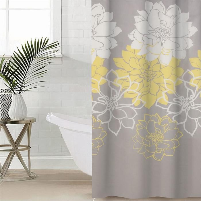 Штора для ванной комнаты Доляна «Большие цветы», 180×180 см, полиэстер, цвет жёлтый