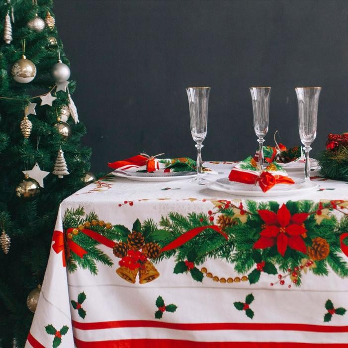 Набор столовый Этель «Рождественский бал» скатерть 220*150 см, салфетки 40*40 см 12 шт, хлопок 100%