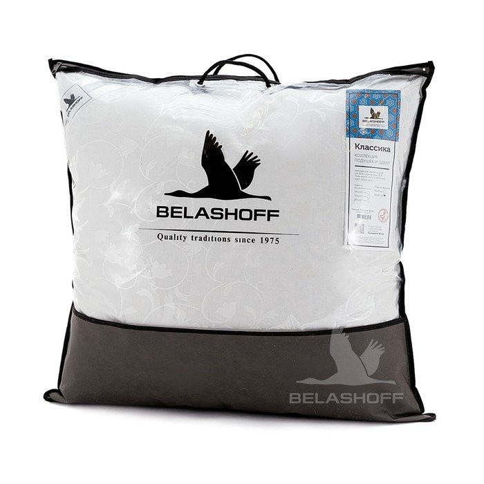 Подушка высокая Belashoff Классика, МИКС, размер 68×68 пух 50%, перо 50%, тик — модель, в качестве наполнителя для которой используются гусиные пух и перо, прошедшие тщательную обработку. Именно поэтому изделие: