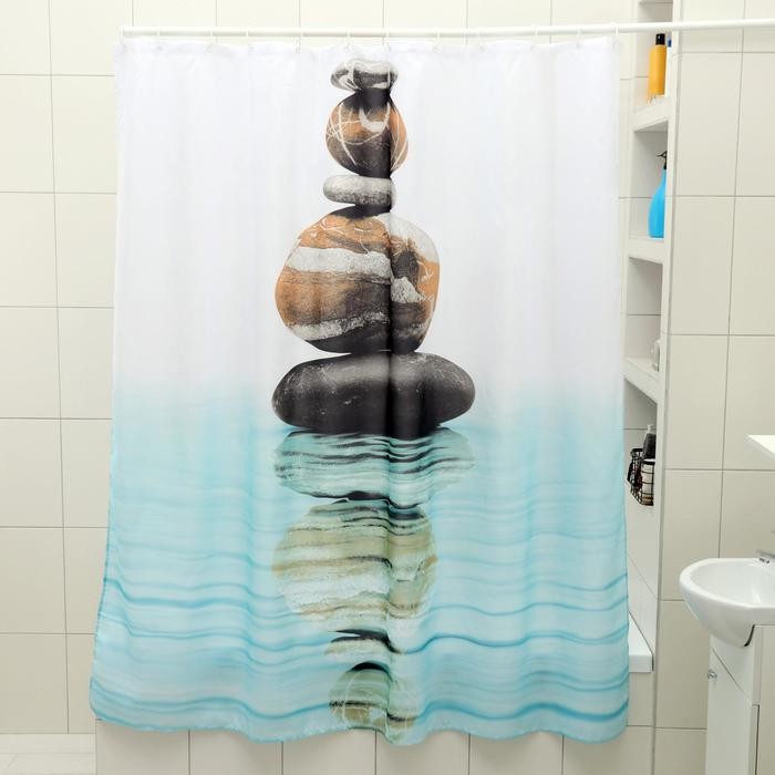 Штора для ванной комнаты Доляна «Камни на воде», 180×180 см, полиэстер