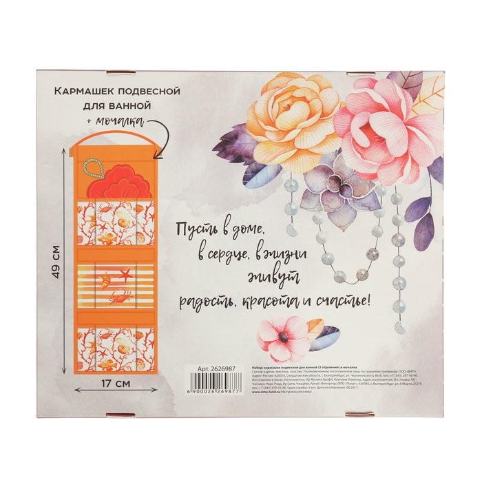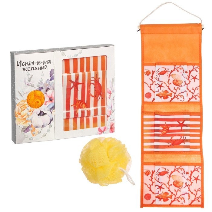 Подарочный набор «Исполнения желаний»: кармашек подвесной пластиковый на 3 отделения и мочалка