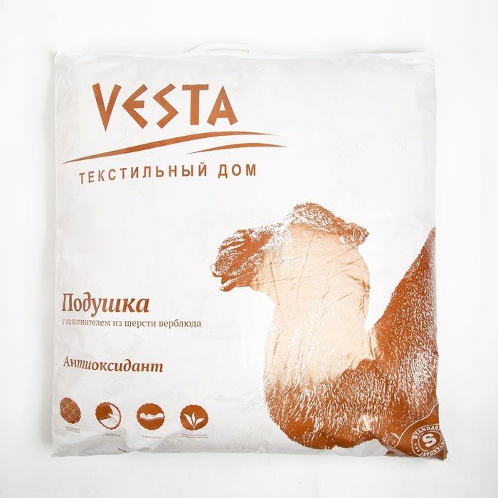 Подушка стёганная 70×70 см, шерсть верблюда, ткань глосс-сатин, п/э 100%