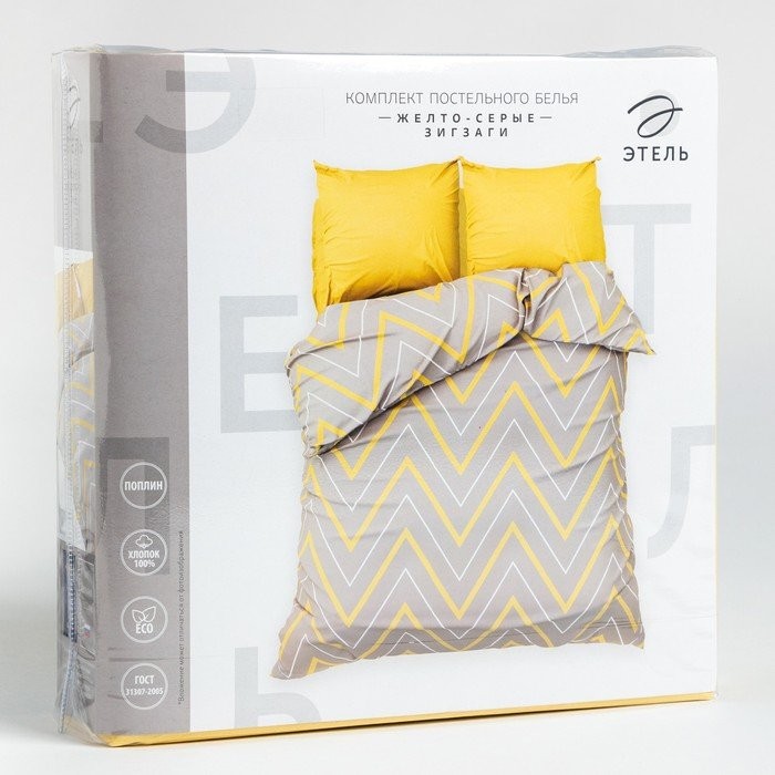 Постельное бельё Этель дуэт «Жёлто-серые зигзаги» 143×215- 2 шт, 240*220, 70×70−2 шт