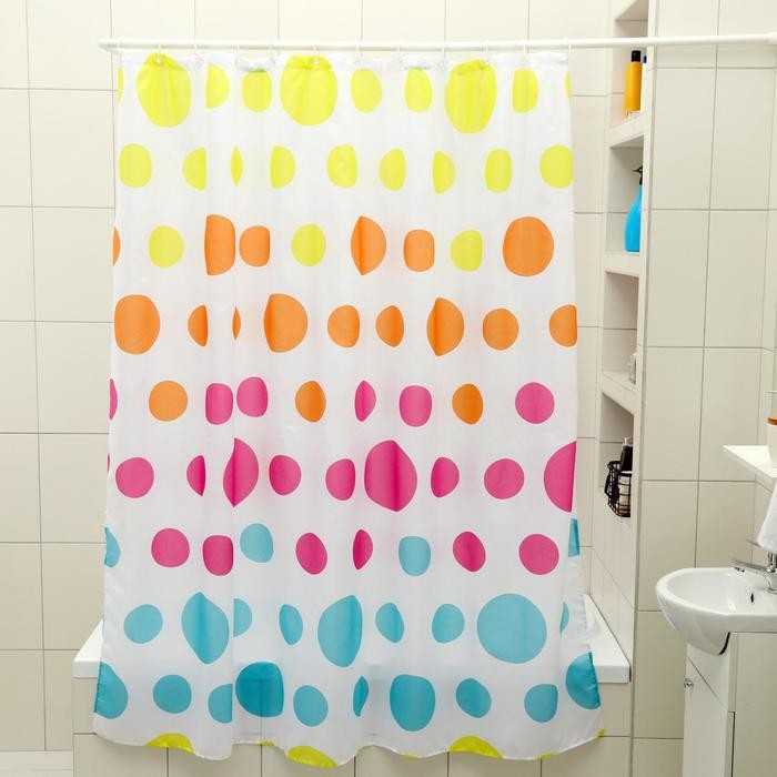 Штора для ванной комнаты Доляна «Цветное драже», 180×180 см, полиэстер