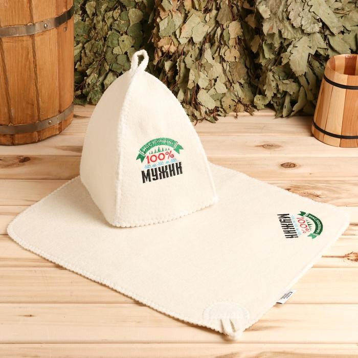 Набор банный: шапка и коврик «100% мужику» в пакете