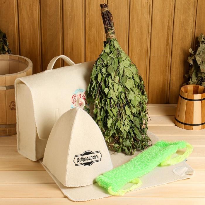 Для комфортного отдыха в парной возьмите с собой набор банных принадлежностей. Предметы из этого комплекта предохраняют тело от перегрева и являются средствами индивидуального пользования. Влажные изделия рекомендуется сушить в расправленном виде на горизонтальной поверхности. Принадлежности из войлока и фетра стирайте вручную при температуре воды 30 °C.