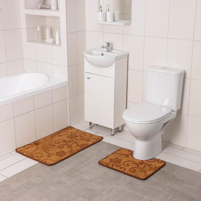 Набор ковриков для ванны и туалета Доляна «Афина», 2 шт: 40×50, 50×78 см, цвет коричневый