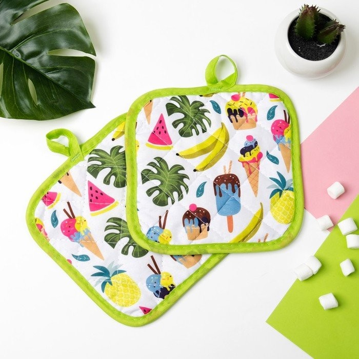 Кухонный набор (2 предмета) Доляна Summer, прихватка 16×16 см — 2 шт, 100% п/э