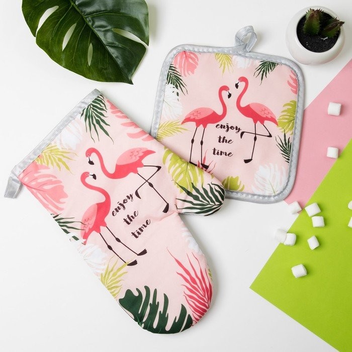 Кухонный набор Доляна Enjoy, прихватка 16*16 см, рукавица 26*17 см,100% п/э