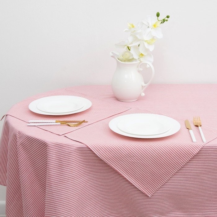 Набор Доляна скатерть 145х200см/салфетки 40х40см 4шт, Розовые полоски, 100%пэ,рогожка 200 гр/м 358