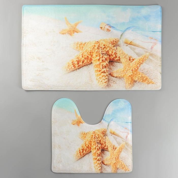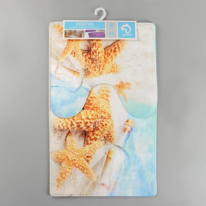 Набор ковриков для ванны и туалета Доляна «Звёзды на песке», 2 шт: 40×45, 45×75 см