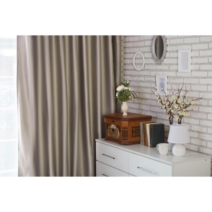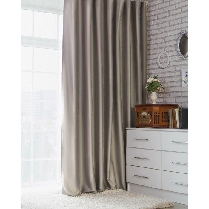 Штора портьерная «Этель» 130×300 см, двусторонний блэкаут, цвет Серебряный, пл. 240 г/м², 100% п/э
