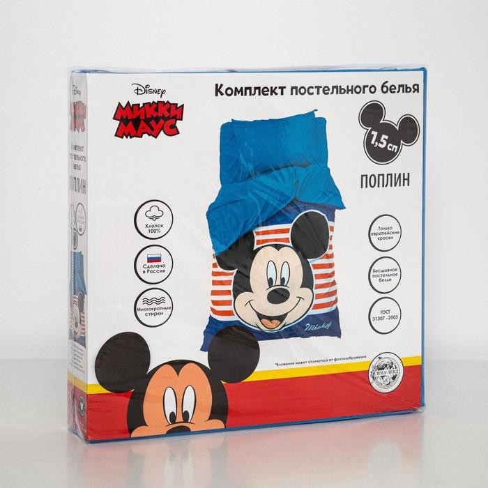 Постельное бельё 1,5 сп «Микки Маус» 143×215 см, 150×214 см, 50×70 см -1 шт., поплин 125 г/м2