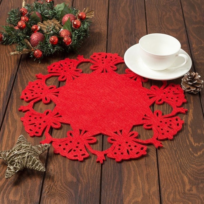 Салфетка декоративная Доляна «Колокольчики», цв, красный,d 30 см, фетр