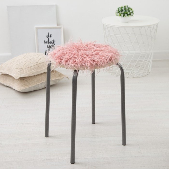 Сидушка на стул меховая Доляна «Уют» цв.розовый d 30 cm,100% п/э