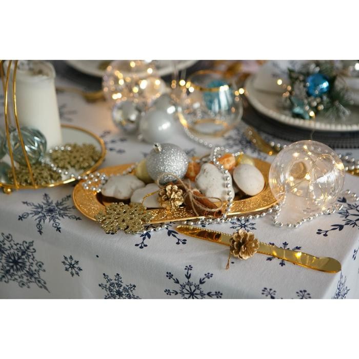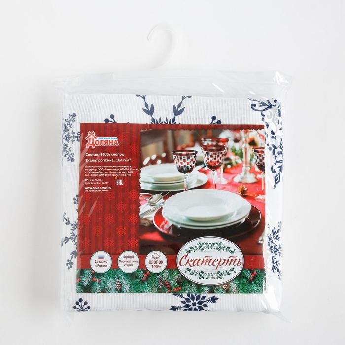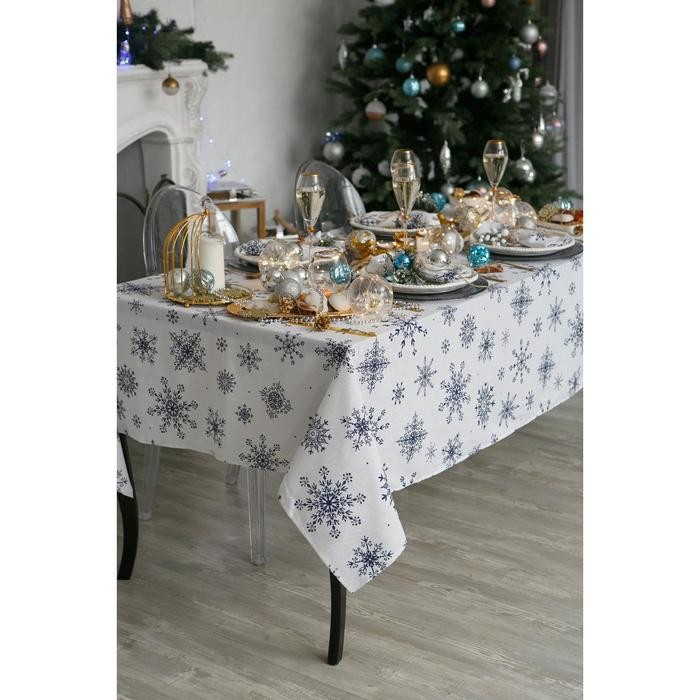 Скатерть Доляна «Новый год: Синие снежинки» 220×149 см, 100% хлопок, 164 г/м2