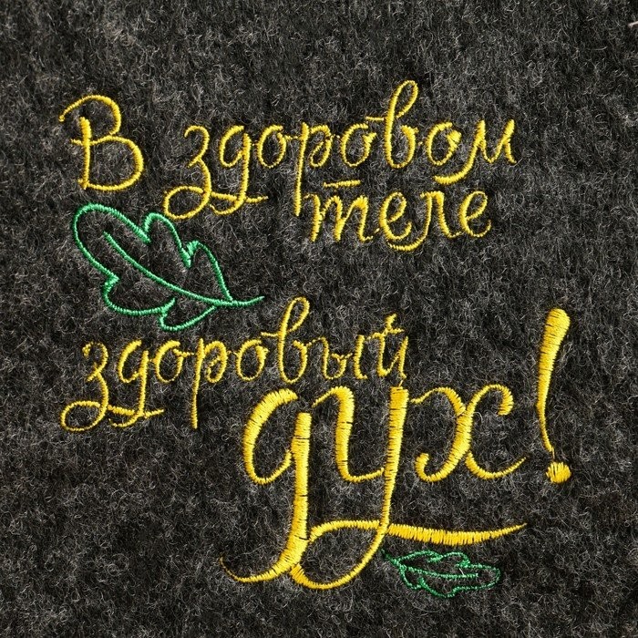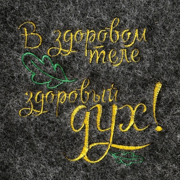 • банная шапка с вышивкой «В здоровом теле здоровый дух»;