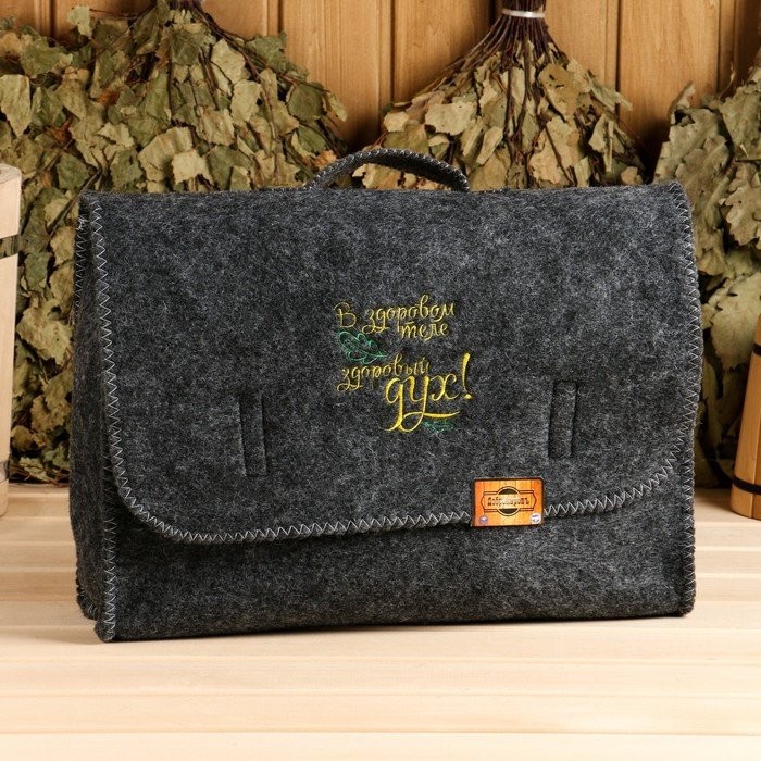 В портфеле можно хранить банные принадлежности и средства личной гигиены. Банная шапка защитит голову от перегрева, волосы от ломкости, а рукавица — от случайных ожогов.