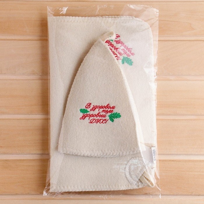 Для комфортного отдыха в парной возьмите с собой набор банных принадлежностей. Предметы из этого комплекта предохраняют тело от перегрева и являются средствами индивидуального пользования. Влажные изделия рекомендуется сушить в расправленном виде на горизонтальной поверхности. Принадлежности из войлока и фетра стирайте вручную при температуре воды 30 °C.