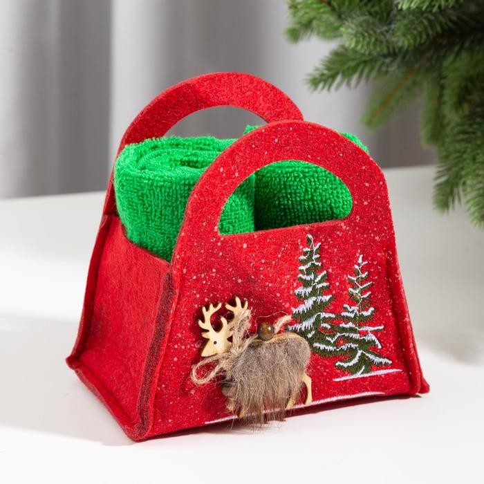 Набор полотенец в корзинке Этель «Новый Год» 30×30 см-2 шт