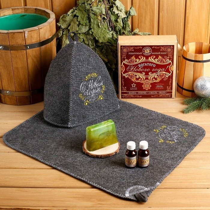 Подарочный набор «Богатого Нового года!»: шапка, коврик, 2 масла, мыло