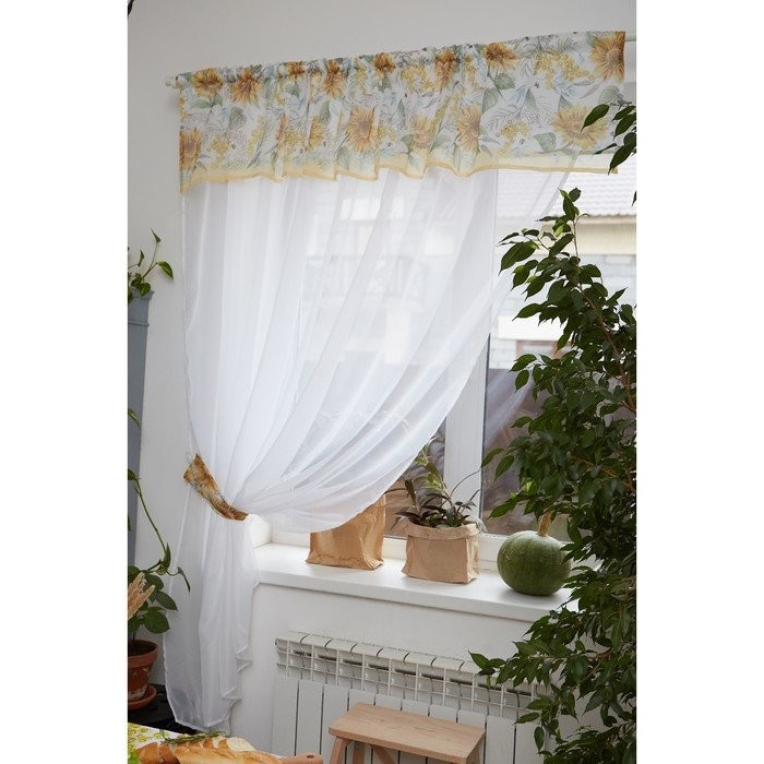 Тюль с подхватом и ламбрекеном «Солнечные цветы» 250х200см, 100% п/э, вуаль