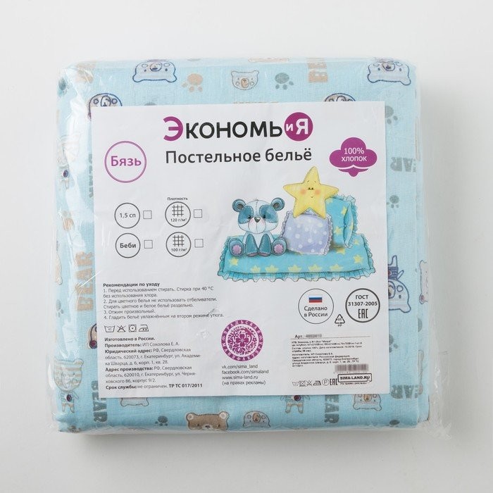 Детское постельное бельё Экономь и Я «Миша» 1.5сп, цвет голубой, 147×210±5см, 150×214±5см, 50×70±5см — 1шт