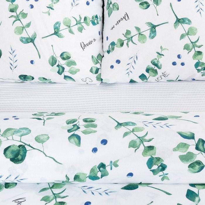 Постельное бельё «Этель» 1.5 сп Листья эвкалипта 143*215 см,150*214 см, 70*70 см 2 шт