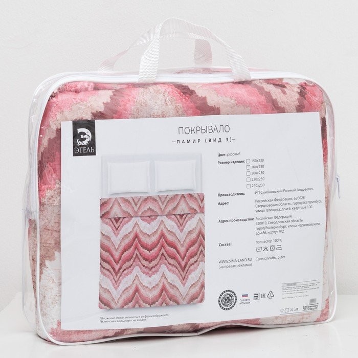 Покрывало Этель «Памир» евро макси 240*230 см, цв. розовый,160 г/м2,100% п/э
