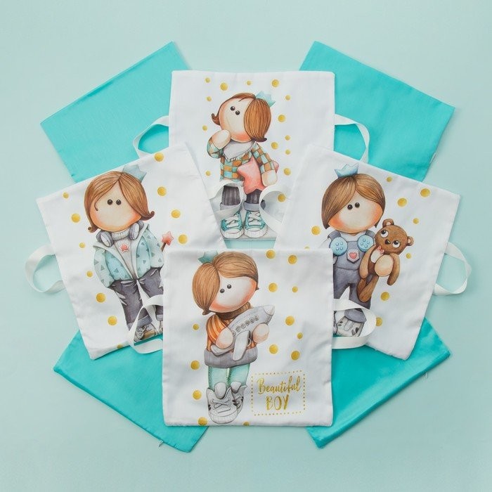 Набор наволочек Крошка Я «Принц Тим» цв. белый/мятный 35*35 см-8 шт, сатин
