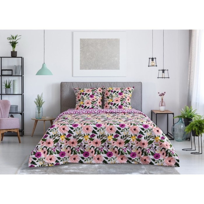 Постельное бельё Этель 2сп Flowers 175×215 см, 200×220 см, 70×70 см-2шт, 100% хлопок, перкаль