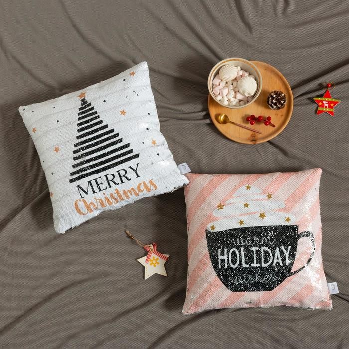 Наволочка с пайетками Этель «Holiday» 40×40 см, 100% п/э