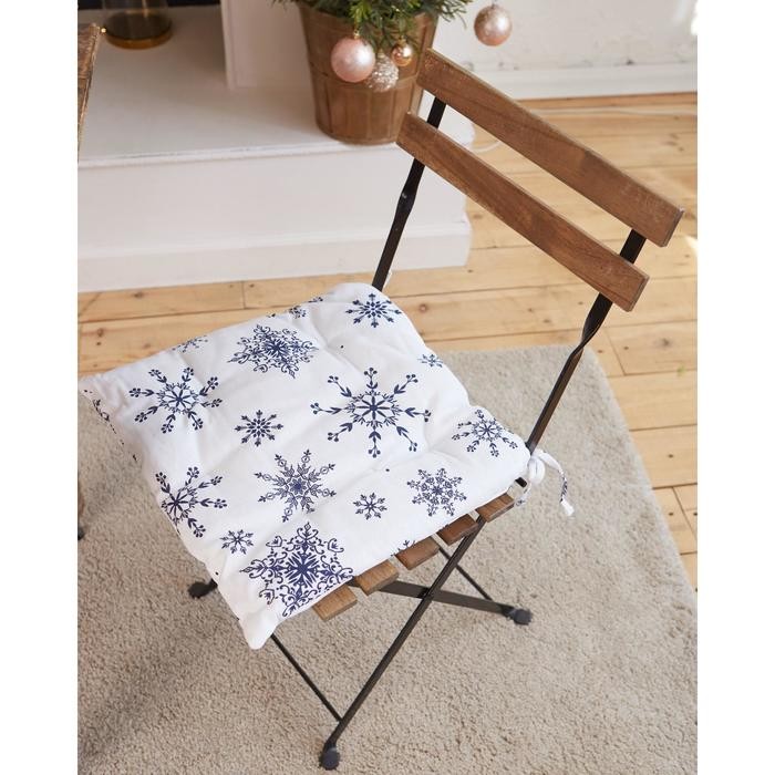 Сидушка на стул «Синие снежинки» 42х42×5 см, 100% хлопок, 164 г/м2