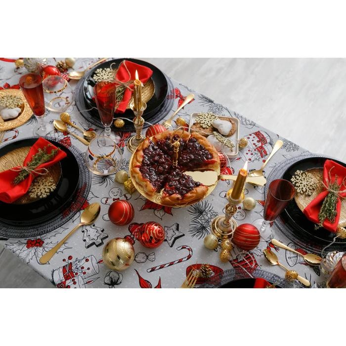 Скатерть Доляна «Новый год: Новогоднее настроение» 250×149 см, 100% хлопок, 164 г/м2
