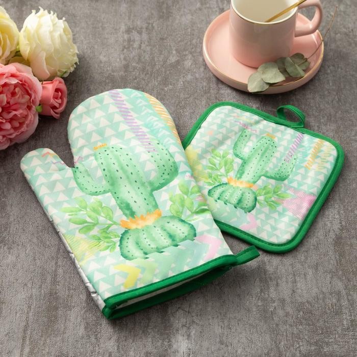 Кухонный набор Доляна «Кактус» прихватка 17×17 см, рукавица 26×16 см