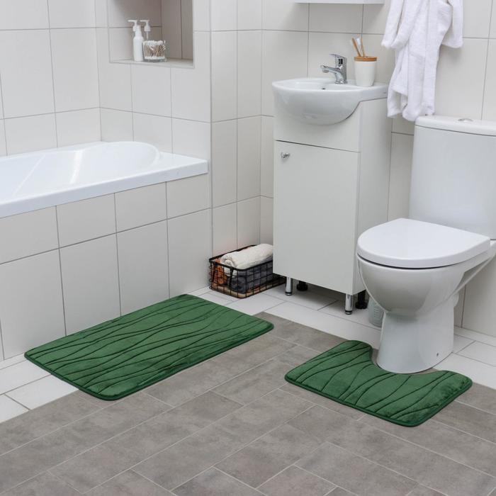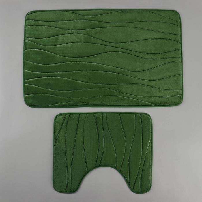 Набор ковриков для ванны и туалета Доляна «Водоросли», 2 шт: 40×50, 50×80 см, цвет зелёный