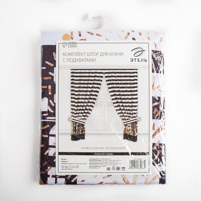 Новогодний комплект штор для кухни с подхватами «Золотой город» 145х180см-2 шт., габардин